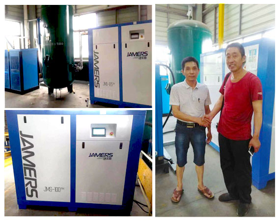 快意电梯经过挂电表实测数据:JMS-100P永磁变频空压机比快意电梯原使用的空压机每小时多省电20度,省电效果达到客户的认可,在同年又再次购买了一台JMS-125P永磁变频空压机。